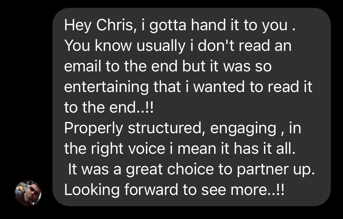 Email me at chris@chrisjamescopy.com and let's chat :)
