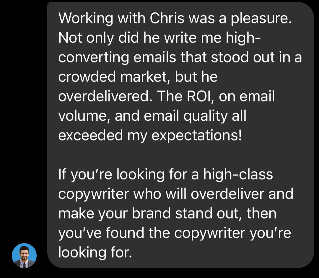 A copywriter who has helped multiple 7 and 8-figure a year companies boost open rates by 428% - Increase sales by 7x - and decrease the amount of emails going to spam by up to 600%